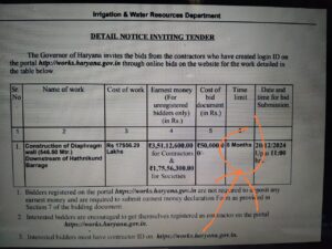 हथनीकुंड बैराज पर उतरप्रदेश की ओर पानी के बहाव की वजह से लगे वहाँ लगे ब्लॉक उखड़ कर बह गए, अब इस नुकसान को थामने के लिए टेंपरेरी वर्क करवाया जा रहा है यानी अगर टेंपरेरी वर्क से काम चल जाता है तो आखिर इतना बड़ा टेंडर करने की क्या जरुरत थी।बताया जाता है कि लगभग 5 से छह महीने पहले बैराज की सुरक्षा के लिए डायाफ्राम वाल का टेंडर कर दिया गया। इस टेंडर में काम की समय सीमा 5 महीने की बताई गई थी। यह काम भी इसी टेंडर वर्क का पार्ट था. जिसको अब तक पूरा हो जाना चाहिए था
